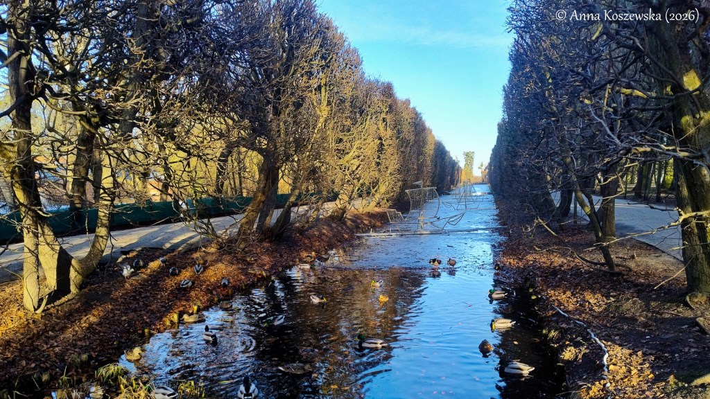 Ostatni raz byłam w Parku Oliwskim późną jesienią i ominął mnie okres, gdy ozdobiony był świątecznymi iluminacjami. Tym razem nie spędziłam w nim jednak aż tak wiele czasu. Właściwie zrobiłam coś w rodzaju rekonesansu po ostatnich roztopach, bo nie przekonuje mnie do końca widok gołych, szarych gałęzi. Dla mnie okres bezśnieżnej zimy i przedwiośnia to najmniej lubiany czas w roku, dlatego z niecierpliwością czekam na pierwsze zielone listki i pąki, których dziś było jednak w parku jak na lekarstwo.